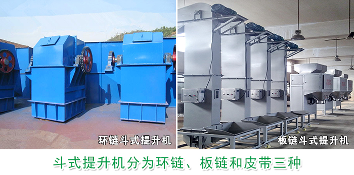 斗式提升機分為環(huán)鏈、板鏈和皮帶三種,根據(jù)所提升的物料選擇的料斗設計不同,其外形設計內(nèi)部配置是不同的,環(huán)鏈式適用于輸送粉狀、小塊狀的物料,板鏈式適用于中、大塊和有磨琢性的物料,皮帶式適用于垂直輸送粉狀、且磨琢性較小的散狀物料,選擇不同種類的提升機造成價格上的差異化。