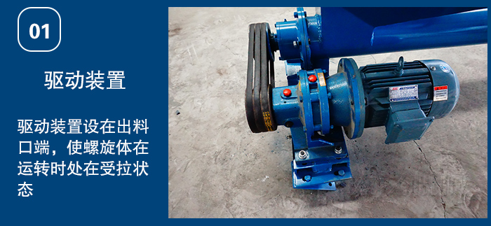 1)驅(qū)動裝置:采用擺線針輪輪減速機或軸裝式硬齒面齒輪減速機,設(shè)計時應(yīng)盡可能將驅(qū)動裝置設(shè)在出料口端,使螺旋體在運轉(zhuǎn)時處在受拉狀態(tài)。頭部裝配有推力軸承,可承受輸送物料時產(chǎn)生的軸向力。