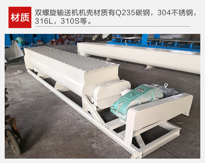 雙螺旋輸送機機殼材質(zhì)有Q235碳鋼,304不銹鋼,316L,310S等等,選擇不同材質(zhì)的輸送機,其價格就會相應有所變化。在型號等條件相同情況下,碳鋼和不銹鋼螺旋輸送機的差價在1500-2000元之間。
