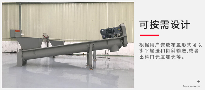 可以根據(jù)用戶安放布置形式可以水平輸送和傾斜輸送,也可以將出料口按照用戶要求的角度生產(chǎn),如出料口要求傾斜多少度,或者出料口長(zhǎng)度加長(zhǎng)等。