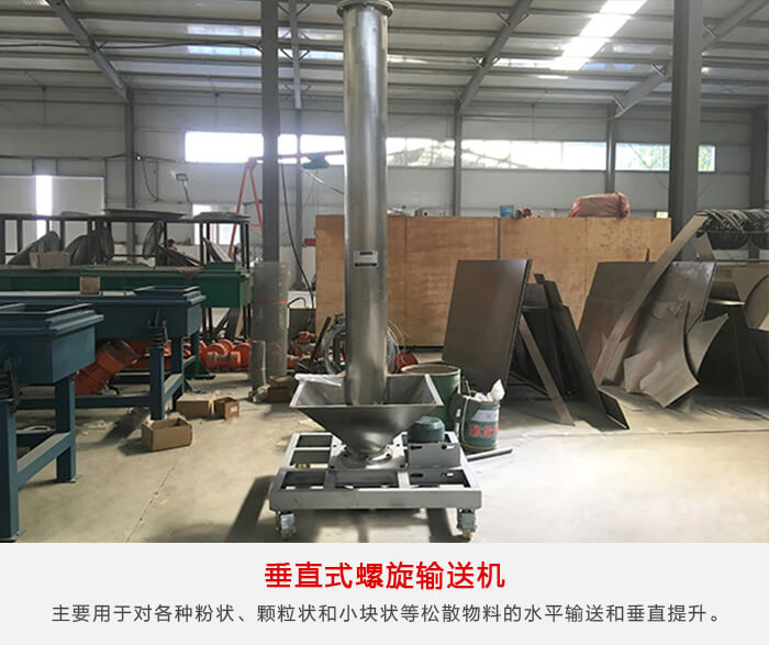 注:垂直式不銹鋼螺旋輸送機適宜垂直或大傾角輸送粉狀、粒狀、非黏性的物料,如:糧食、飼料、化工原料、水泥等,不適宜輸送輸送塊狀、粘性及流動性強的物料,如:粉煤灰。