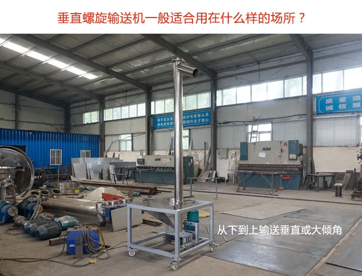 垂直螺旋輸送機(jī)采用從下到上輸送垂直或大傾角粉末、顆粒及非粘性干燥物料,那么垂直螺旋輸送機(jī)適合用在哪些場(chǎng)所呢?
