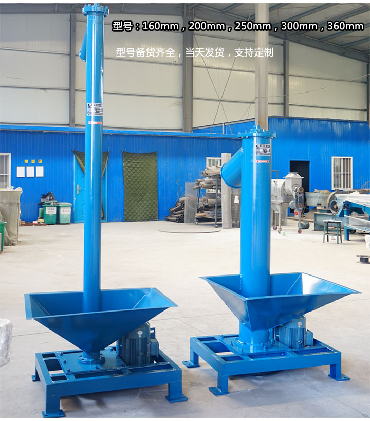 大漢機(jī)械的垂直立式螺旋輸送機(jī)型號有160,200,250,300,360等5種規(guī)格,且備貨齊全,支持當(dāng)天發(fā)貨;此外,特定型號可根據(jù)用戶描述需求,設(shè)計(jì)圖紙,進(jìn)行生產(chǎn),如移動(dòng)式垂直立式螺旋輸送機(jī),專用于不固定場所的物料輸送。