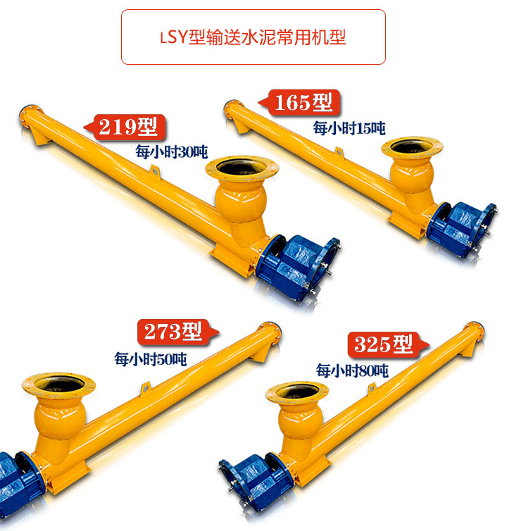 LSY型是水泥螺旋輸送機(jī)是輸送水泥的專用機(jī)型,常用的4種型號(hào):