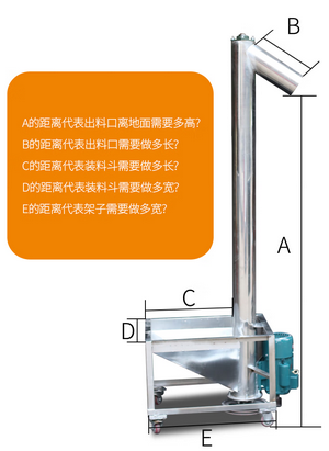 垂直螺旋輸送機的高度是指進料口到出料口的距離,對于在高處或小筒倉(8米高度差)中運輸產(chǎn)品,當需要增加提升高度時,通常需要中間吊架或穩(wěn)定器軸承來消除過度的螺旋偏轉(zhuǎn)。