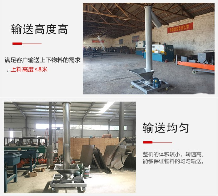 1、垂直輸送高度可達(dá)8米,需要增加提升高度時(shí),通常需要中間吊架或穩(wěn)定器軸承來(lái)消除過(guò)度的螺旋偏轉(zhuǎn)。