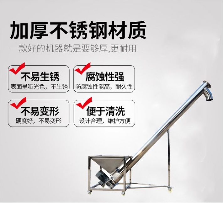 不銹鋼螺旋輸送機采用304或316L不銹鋼制造,耐酸堿腐蝕,耐高溫,螺旋面經(jīng)處理不易生銹,保證原料不污染,無殘料在機器中,適用于必須嚴格避免輸送材料受到任何污染,要求清潔和完美耐腐蝕的應(yīng)用,如食品、化學(xué)品、醫(yī)藥以及任何其他需要衛(wèi)生、腐蝕或極端溫度的應(yīng)用。