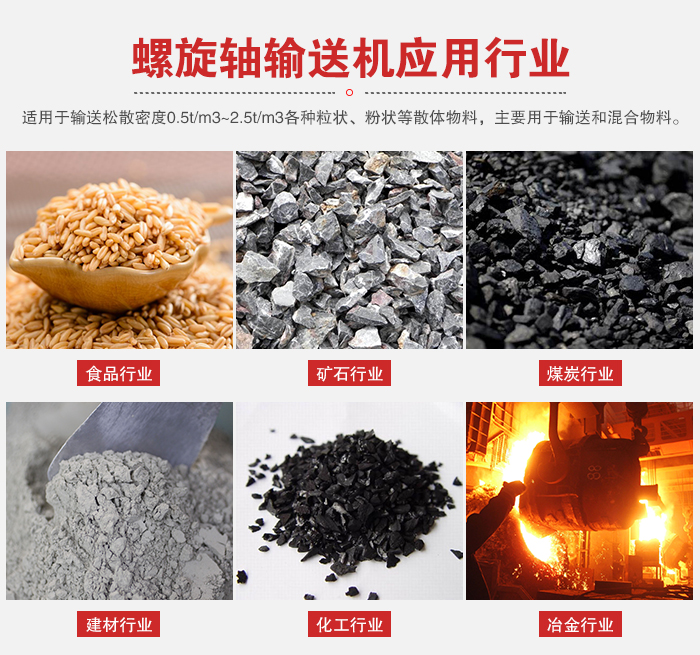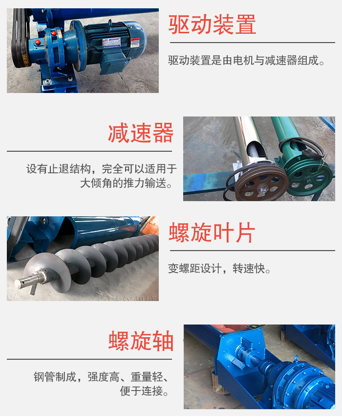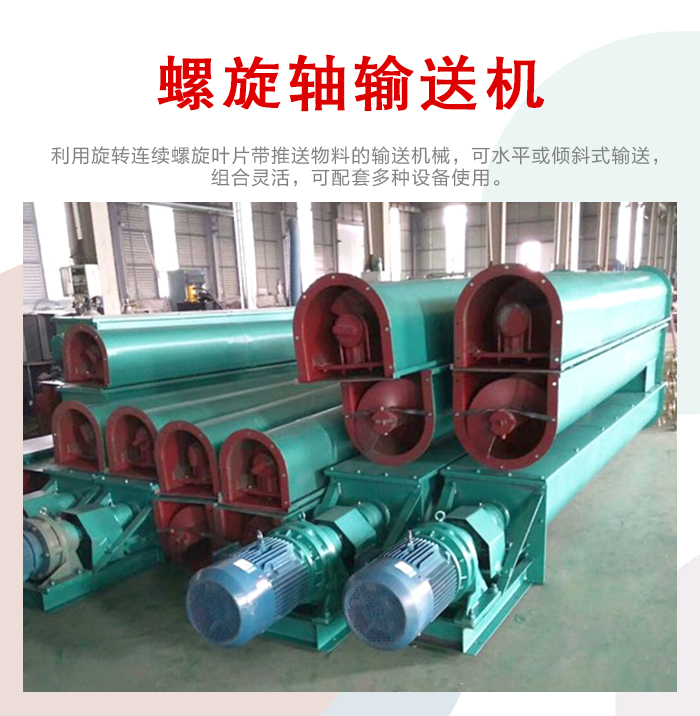 螺旋軸輸送機(jī)主要由驅(qū)動裝置,機(jī)殼、蓋板、螺旋軸、螺旋葉片、進(jìn)料口、出料口等部件組成。