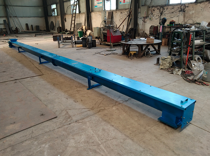 水平管式螺旋給料機(jī)適合多點(diǎn)裝料與卸料,輸送過程中可同時(shí)完成混合、攪拌或冷卻功能。對(duì)超載敏感,易堵塞;對(duì)物料有破碎損耗,適用于水平或微傾斜(20º以下)連續(xù)均勻輸送松散物料,工作環(huán)境溫度為-20—+40℃,輸送物料溫度為-20—+80℃。其轉(zhuǎn)速相對(duì)于垂直輸送機(jī)要低,主要用于水平或小傾角輸送物料,輸送距離一般不大于70米。