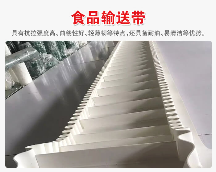 食品輸送帶材質(zhì)有PVC、聚乙烯、聚炳稀、PP、塑鋼ACETAL、PE、尼龍、PA等,按照具體食品都有相應(yīng)的專用輸送,除了具有抗拉強(qiáng)度高、曲繞性好、輕薄韌等特點(diǎn)外,還具備耐油、衛(wèi)生、干凈衛(wèi)生、易清潔等優(yōu)勢,是食品行業(yè)理想的輸送帶。