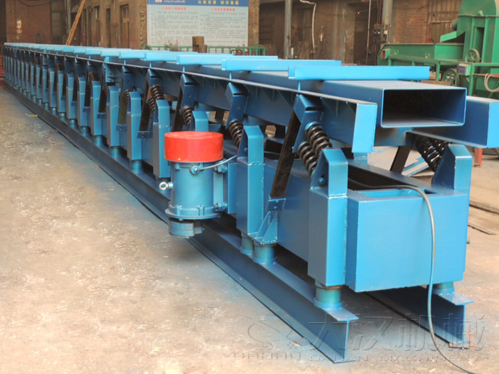 振動輸送機由由鐵芯、線圈、銜鐵和料槽等構(gòu)成。整流后的電暢通過線圈時,發(fā)生周期變更的電磁吸力,激起料槽發(fā)生振動。電磁振動輸送機一般采取高頻率、小振幅。