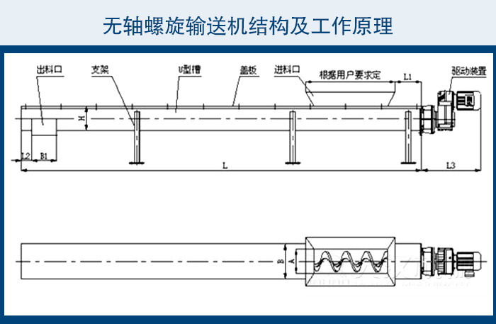 驅(qū)動、殼體、襯板、葉片、 支架、蓋板、進料口、出料口,輸送長度、傾斜角度都可以按照客戶要求來定做,不同物料不同輸送角度我們?yōu)槟侠磉x型!