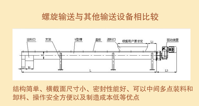 (5)螺旋輸送機(jī)由螺旋機(jī)本體、進(jìn)出料口及驅(qū)動裝置三部分組成。