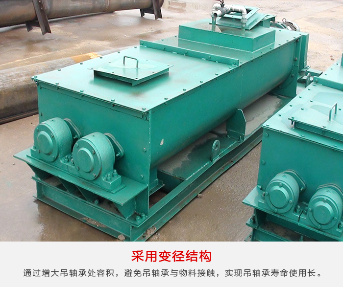雙軸螺旋輸送機采用變徑結構,通過增大吊軸承處容積,避免吊軸承與物料接觸,實現(xiàn)吊軸承壽命可達到兩年以上。