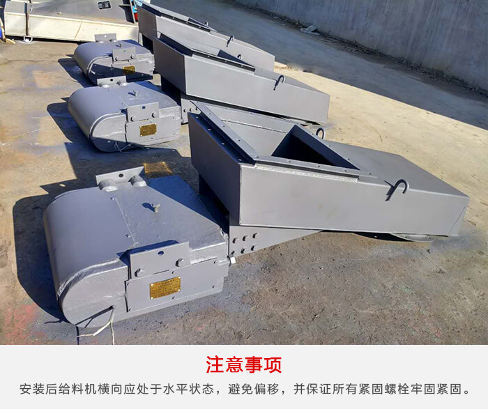 安裝后給料機橫向應(yīng)處于水平狀態(tài),避免給料機工作時物料向一側(cè)偏移,并保證所有緊固螺栓牢固緊固。
