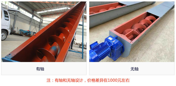 絞龍螺旋輸送機(jī)按物料屬性不同所使用的螺旋葉片不同可分有軸和無(wú)軸兩種,采用的設(shè)計(jì)理念也就不同,同種情況下,無(wú)軸的要比有軸的生產(chǎn)難度高,因此價(jià)格也會(huì)存在1000元左右的偏差。
