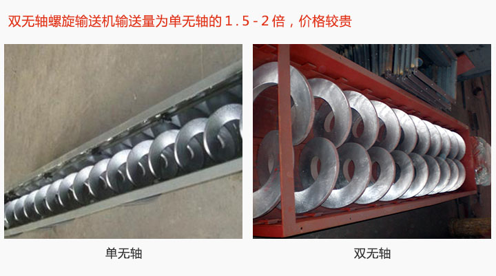 無軸螺旋輸送機(jī)型號(hào)有WLS150-WLS500等6中規(guī)格,型號(hào)越大產(chǎn)量越高,價(jià)格越貴;此外還分單無軸和雙無軸兩種:雙無軸螺旋輸送機(jī)輸送量為單無軸的1.5-2倍,可輸送物料同時(shí)具備冷卻、攪拌的功能,其價(jià)格比單軸貴。