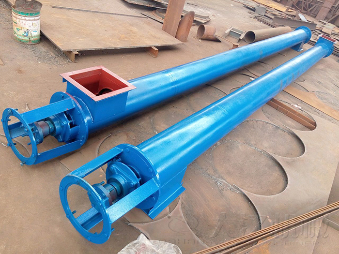 水平管式螺旋給料機(jī)適合多點(diǎn)裝料與卸料,輸送過程中可同時(shí)完成混合、攪拌或冷卻功能。對(duì)超載敏感,易堵塞;對(duì)物料有破碎損耗,適用于水平或微傾斜(20º以下)連續(xù)均勻輸送松散物料,工作環(huán)境溫度為-20—+40℃,輸送物料溫度為-20—+80℃。其轉(zhuǎn)速相對(duì)于垂直輸送機(jī)要低,主要用于水平或小傾角輸送物料,輸送距離一般不大于70米。